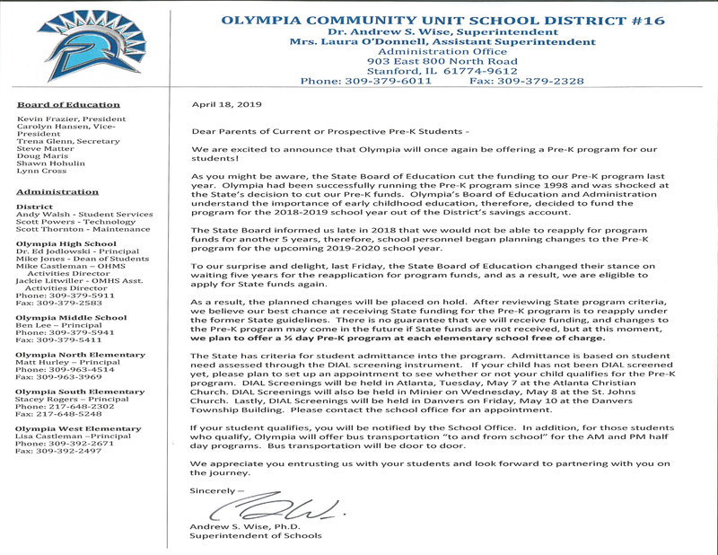 Letter to Pre-K Parents